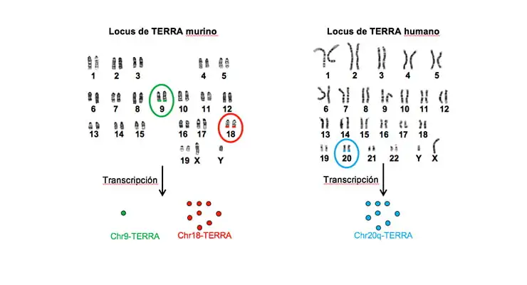 El trabajo de investigación publicado 17 de Agosto 2016 publicado en la Nature Communications, titulado. “Telomeric RNAs are essential to maintain telomeres”. Lograron indentificar los TERRA en el Brazo largo del cromosoma 20, “La identificación de 20q como uno de los locus principales de la generación de los TERRA humanos nos permite explorar el papel de TERRA en la biología de los telómeros”, escriben los autores. Al eliminarlo en varias líneas celulares, vieron que se producía un aumento significativo del daño en al ADN y del daño en los telómeros, así como un aumento de la inestabilidad cromosómica.