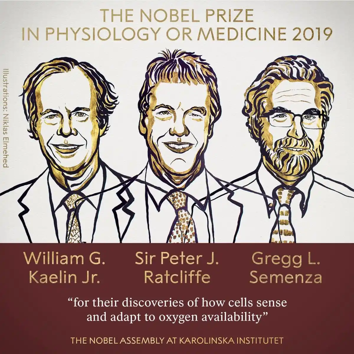 El Premio Nobel de Fisiología o Medicina 2019 ha sido otorgado a los beneficiarios del Instituto Nacional de Salud Gregg L. Semenza, MD, Ph.D., de la Universidad Johns Hopkins, y William G. Kaelin Jr., MD, del Instituto de Cáncer Dana-Farber , quienes comparten el premio con Sir Peter J. Ratcliffe, MD, de la Universidad de Oxford y el Instituto Francis Crick, por sus descubrimientos sobre cómo las células perciben y se adaptan a la disponibilidad de oxígeno.