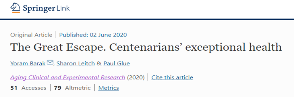 No fumar y participar socialmente durante la edad avanzada se asociaron con ser un centenario libre de enfermedades crónicas comunes. La dirección del proyecto de investigación estuvo a cargo de Yoram Barak, profesor asociado Junto con su colega, el profesor Paul Glue, del Departamento de Medicina Psicológica, y la Dra. Sharon Leitch, del Departamento de Práctica General y Salud Rural. El estudio de investigación titulado The Great Escape. Centenarians’ exceptional health y publicado en el Aging Clinical and Experimental Research